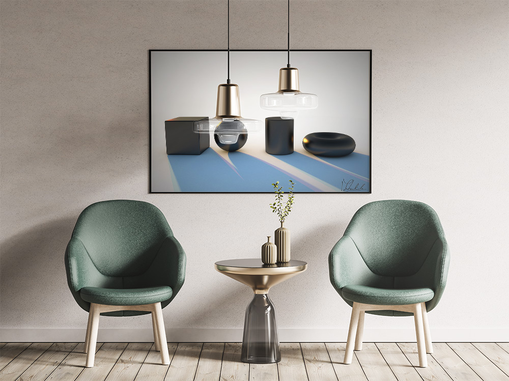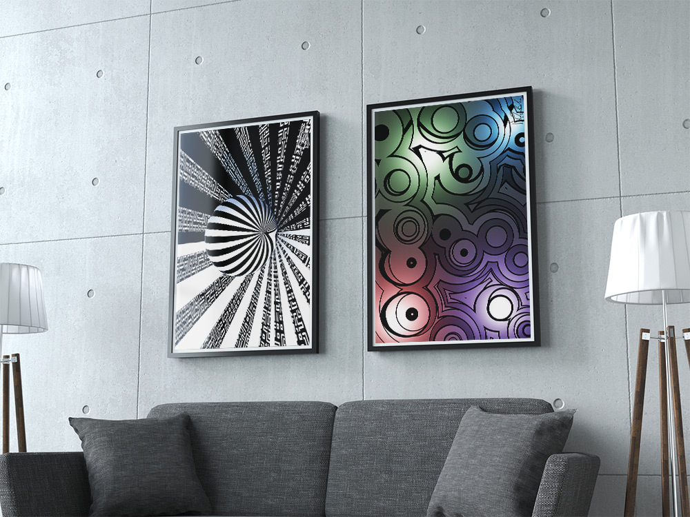 Due to the high quality / high resolution rendering of the art pieces It is possible to print right away up to A0/B0. If you like a piece in that size category please use the contact form below.
